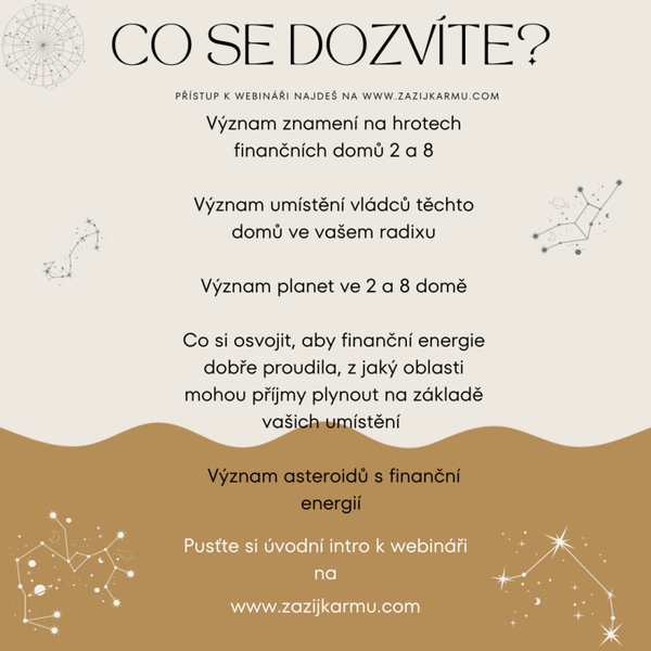 Stejně tak jako v jiných oblastech života, i tady můžeme využít záznam našeho potenciálu - náš nativní horoskop, ze kterého zjistíme, jaký potenciál máme pro správné proudění finanční energie.